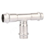 Трехраструбный пресс-тройник из нержавеющей стали обеспечивает соединение трех тонкостенных стальных труб систем водоснабжения, отопления, иных инженерных и технологических установок с рабочей температурой до 120 °С и давлением до 16 бар. Изделие изготовлено из стали AISI 304. Материал уплотнительных колец – эластомер EPDM.