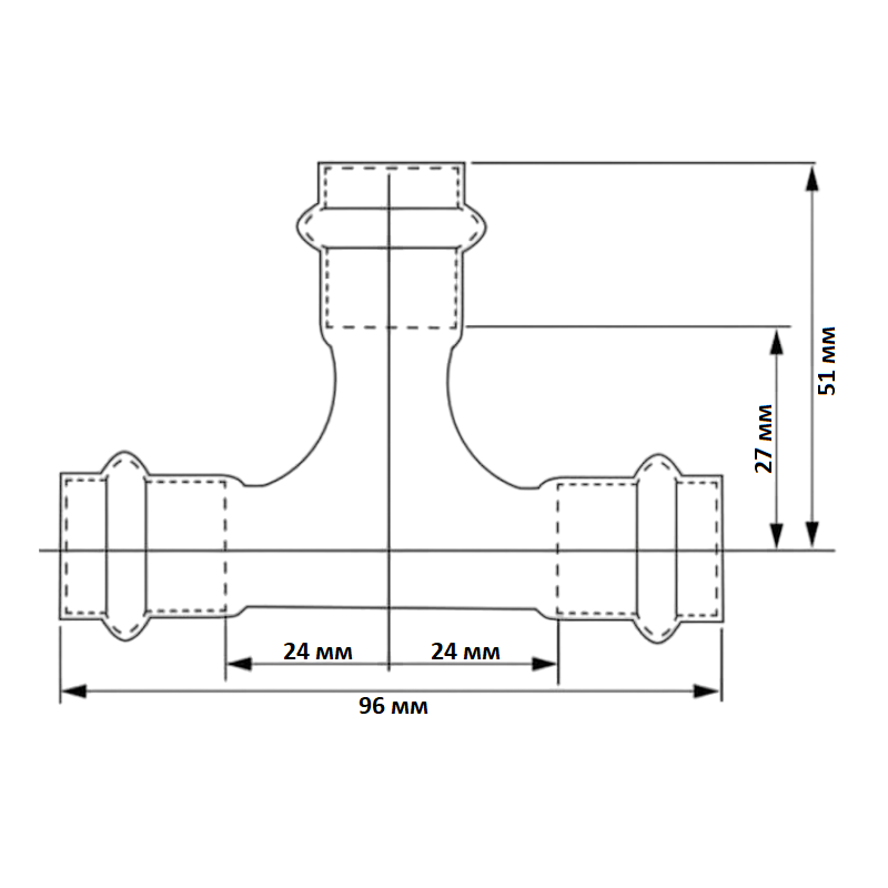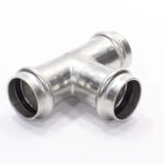 Трехраструбный пресс-тройник из нержавеющей стали обеспечивает соединение трех тонкостенных стальных труб систем водоснабжения, отопления, иных инженерных и технологических установок с рабочей температурой до 120 °С и давлением до 16 бар.