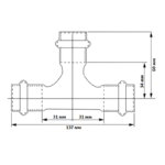 Трехраструбный пресс-тройник из нержавеющей стали обеспечивает соединение трех тонкостенных стальных труб систем водоснабжения, отопления, иных инженерных и технологических установок с рабочей температурой до 120 °С и давлением до 16 бар.