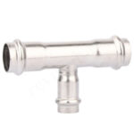 Трехраструбный пресс-тройник из нержавеющей стали обеспечивает соединение трех тонкостенных стальных труб систем водоснабжения, отопления, иных инженерных и технологических установок с рабочей температурой до 120 °С и давлением до 16 бар.