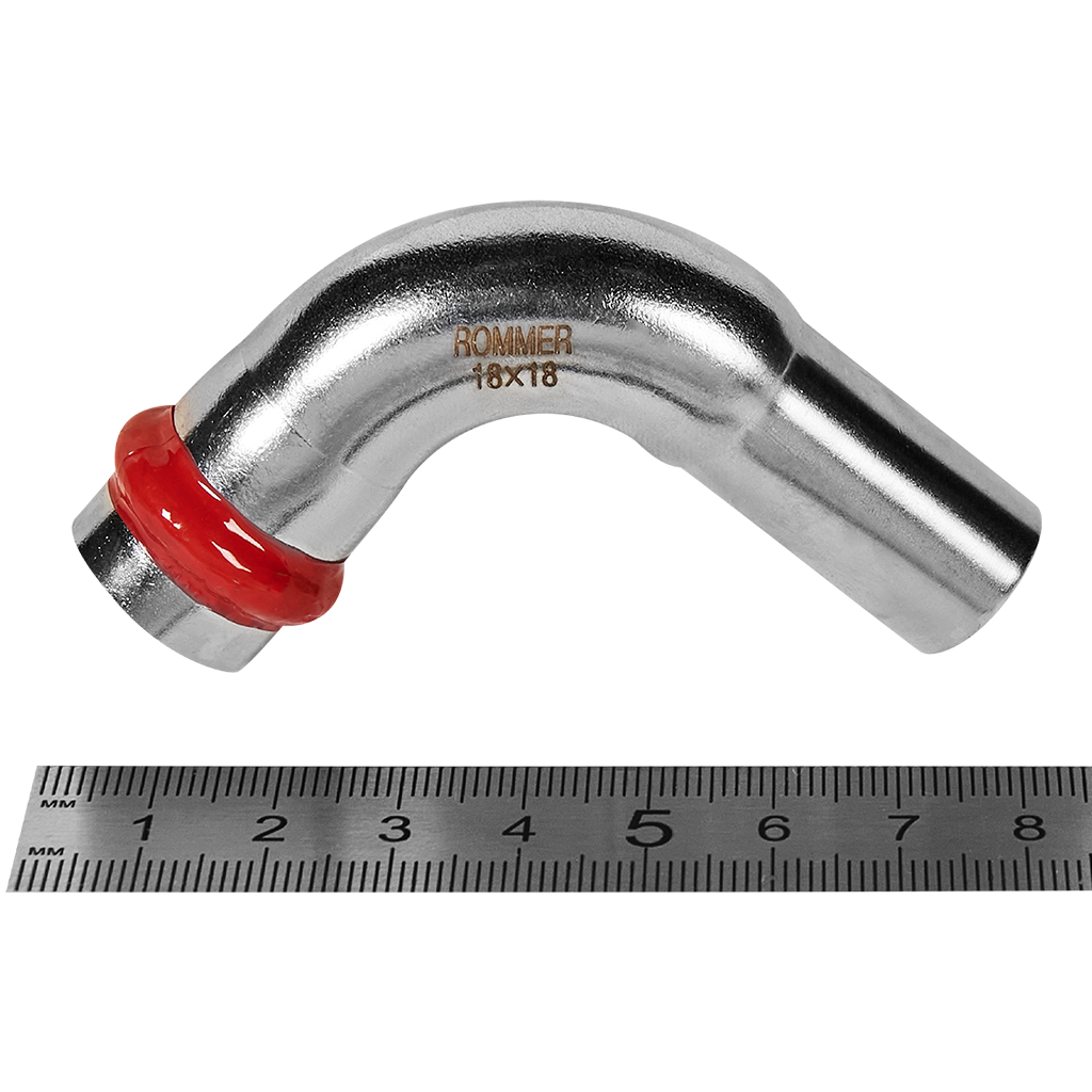 RSS-0002-000018 ROMMER Угольник однораструбный 90° ВПр-НПр, 18, из нержавеющей стали прессовой