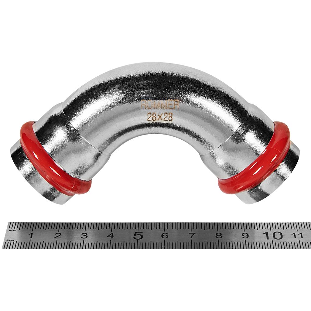 RSS-0003-000028 ROMMER Угольник 90° ВПр-ВПр, 28, из нержавеющей стали прессовой