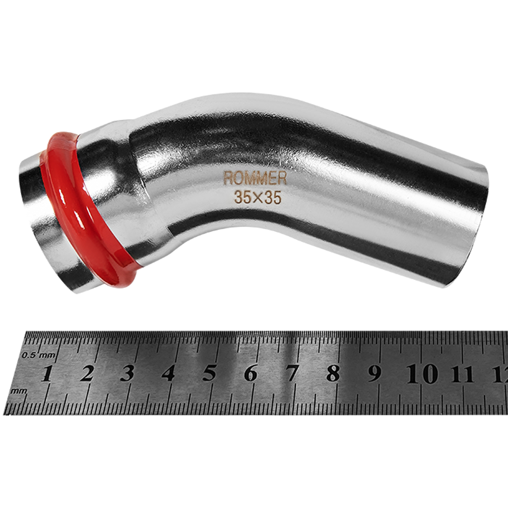 RSS-0004-000035 ROMMER Угольник однораструбный 45° ВПр-НПр, 35, из нержавеющей стали прессовой
