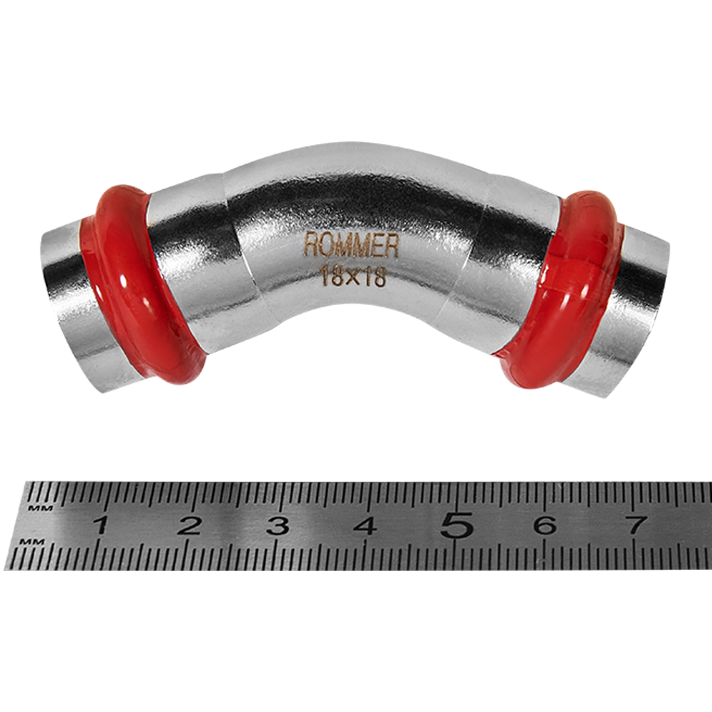 RSS-0005-000018 ROMMER Угольник 45° ВПр-ВПр, 18, из нержавеющей стали прессовой
