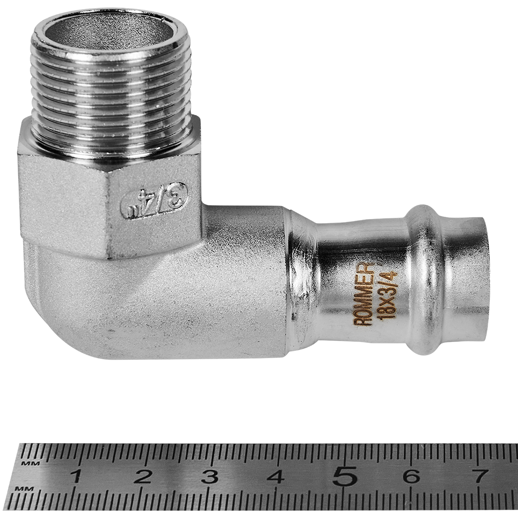 ROMMER Угольник-переходник ВПр-НР, 18х3/4, из нержавеющей стали прессовой RSS-0010-001834