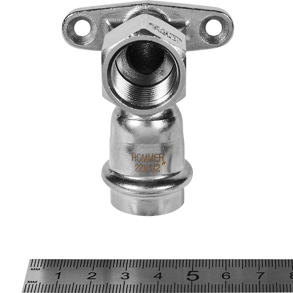 RSS-0011-002212 ROMMER Угольник настенный с креплением ВПр-ВР, 22х1/2, из нержавеющей стали прессовой