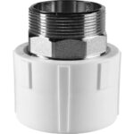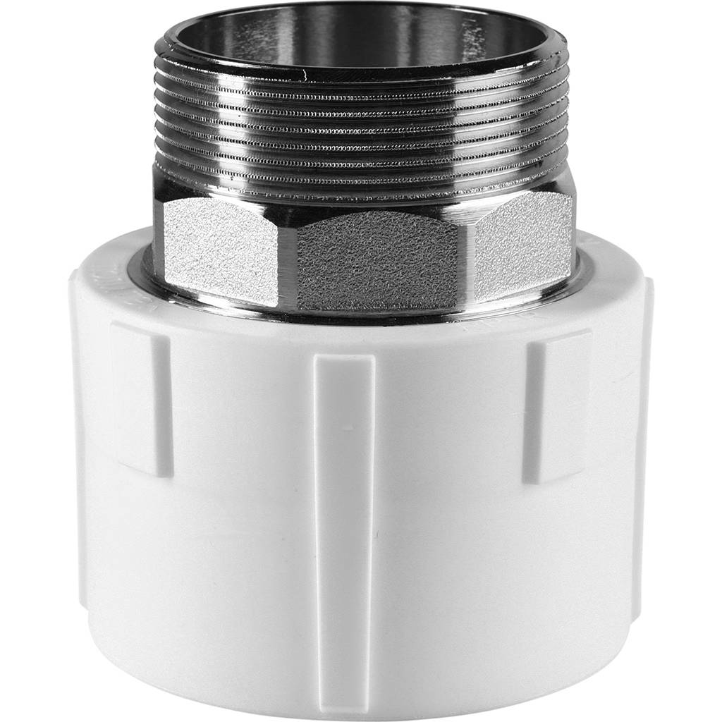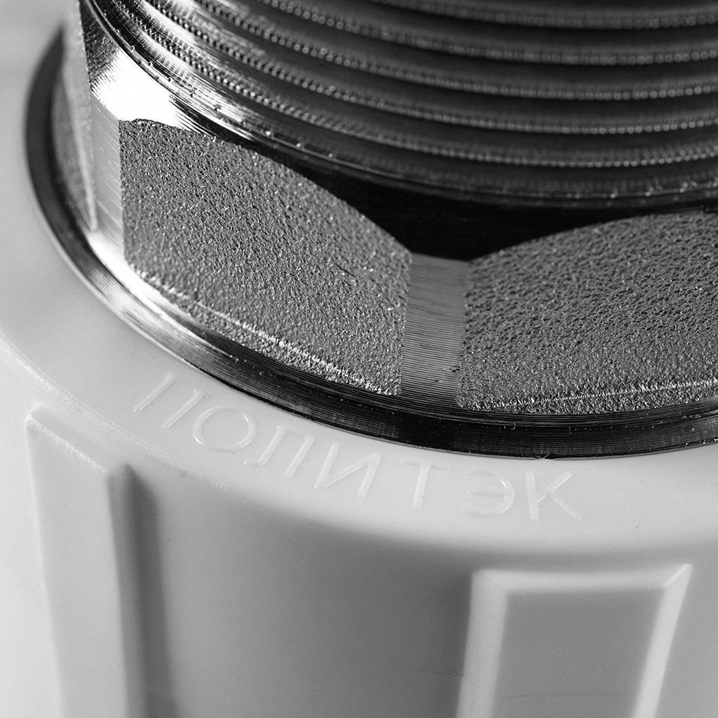 9000006302 Политэк 63×2Муфта комбинированная под шестигранник наруж. резьба для полипропиленовых труб под сварку (цвет белый) Сертификаты Листовка Политек