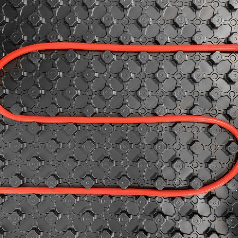 Выступающие элементы (т.н. «бобышки») плотно фиксируют отопительные трубы с первого раза. Благодаря им, применения сетки, хомутов или скоб не требуется. Жесткая полистирольная пленка обеспечивает дополнительную прочность плит, защищает от влаги и продлевает срок службы всей системы.
