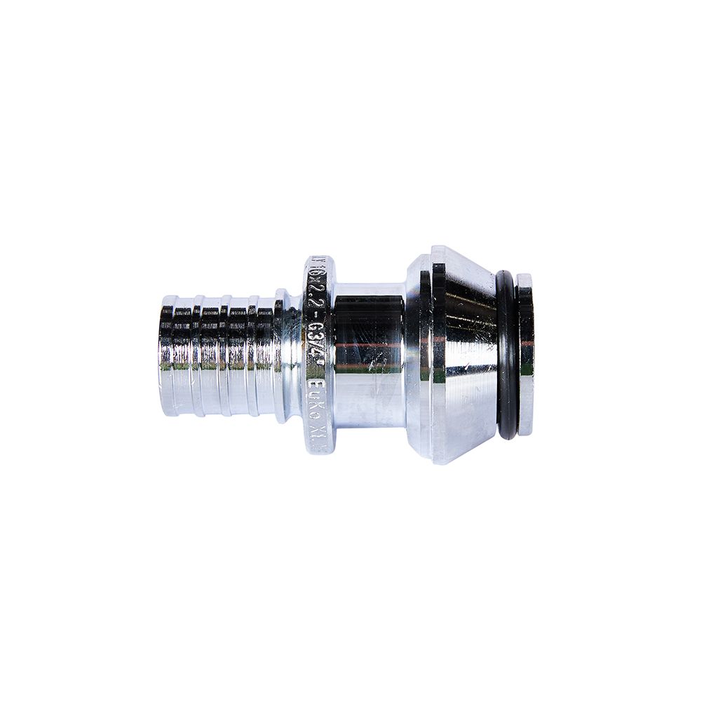 Улучшена конструкция фитинга. Ранее для фиксации гайки использовалось стопорное кольцо, в новой версии его функцию выполняет опорный бортик. Это обеспечило более надежную фиксацию накидной гайки при соединении.