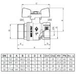 – Кран шаровый латунный, стандартный, резьбы внутренняя – наружная по ISO 228/1;