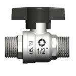 Кран шаровой резьб. 1/2″, PN40, WAAG, латунь, нар.р.- нар.р., с бабочкой WG.BV.BMM15