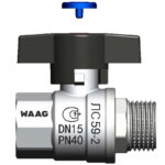 Полнопроходной запорный шаровой кран WAAG изготовлен из латуни CW617N. Никелированное покрытие защищает кран от коррозийных веществ. Кран имеет ручку типа «бабочка» из алюминиевого сплава.