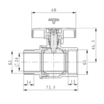 Кран шаровой резьб. 1″, PN40, WAAG, латунь, вн.р.- нар.р., с бабочкой WG.BV.BFM25