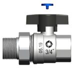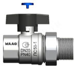 Полнопроходной запорный шаровой кран WAAG с американкой изготовлен из латуни CW617N. Никелированное покрытие защищает кран от коррозийных веществ. Кран имеет ручку типа «бабочка» из алюминиевого сплава.