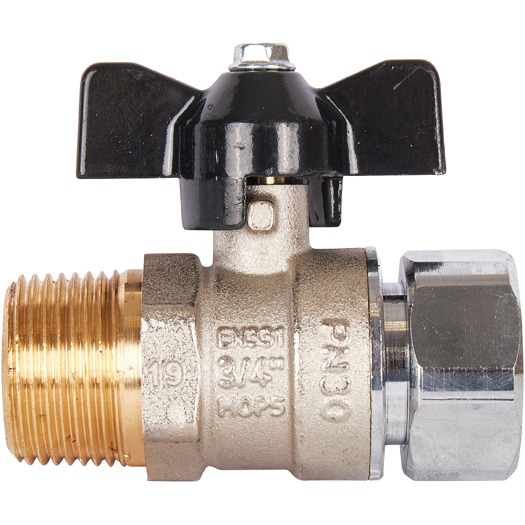 КРАН ШАРОВОЙ С НАКИДНОЙ ГАЙКОЙ, НР/НАКИДНАЯ ГАЙКА, РУЧКА БАБОЧКА 3/4X3/4 STOUT SVB-1009-000020