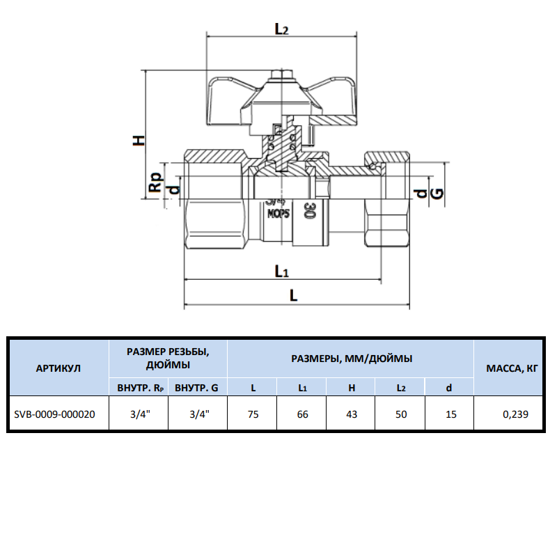 STOUT Кран шаровой с накидной гайкой ВР, ручка бабочка 3/4×3/4 SVB-0009-000020