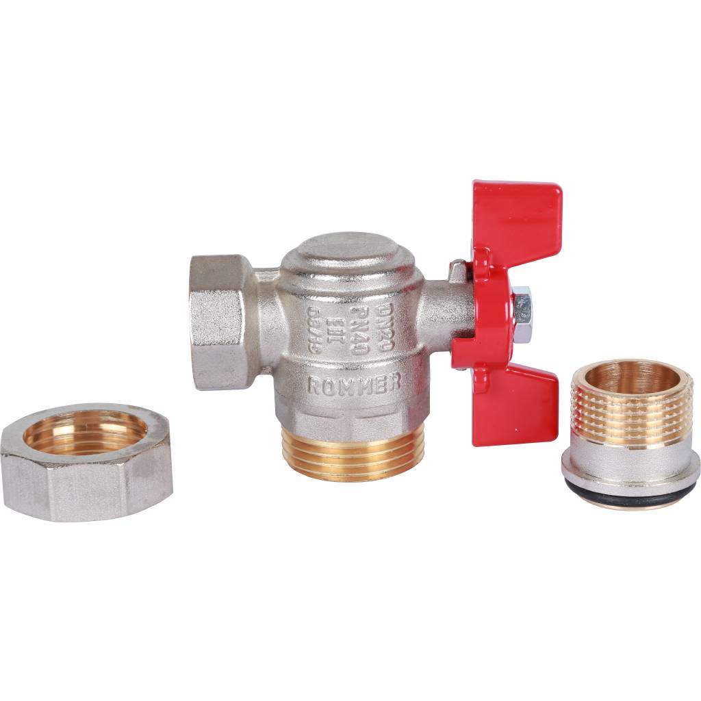 RBV-0006-0610220 ROMMER Шаровой кран угловой с американкой 3/4ВН/НР, ручка бабочка