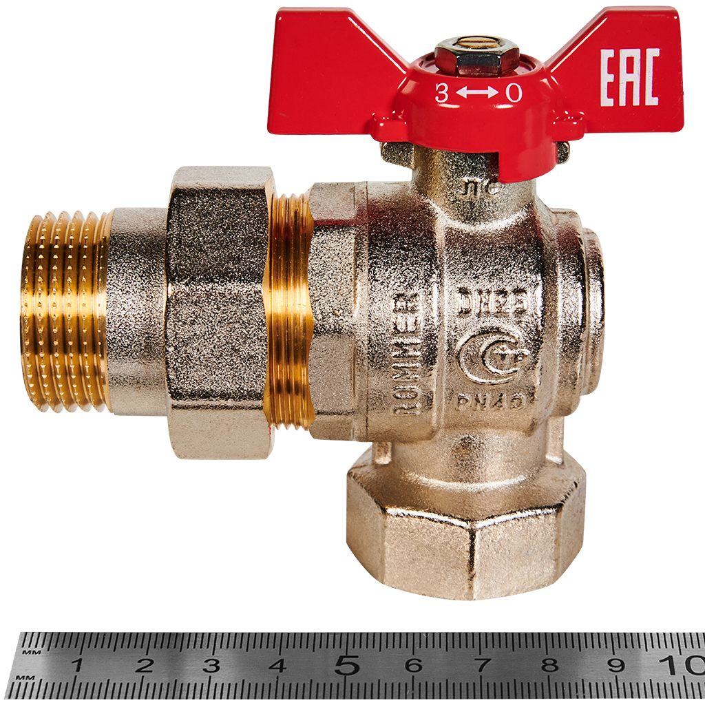 RBV-0006-2610225 ROMMER Кран шаровой угловой с американкой, ВР/НР, ручка бабочка 1