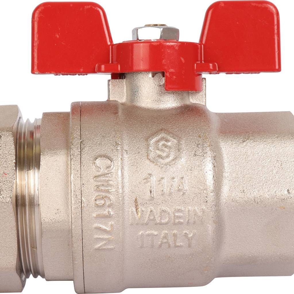 SVB-1007-000032 STOUT Кран шаровой полнопроходной самериканкой , ВР/НР, ручка бабочка 1 1/4 (EPDM)