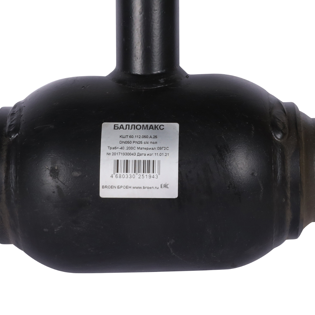 БРОЕН Балломакс КШТ 60.112.050 кран шаровой стальной для теплоснабжения полный проход с/с DN 050 PN 25 с рукояткой [КШТ 60.112.050.А] 585120 Сертификаты Эк