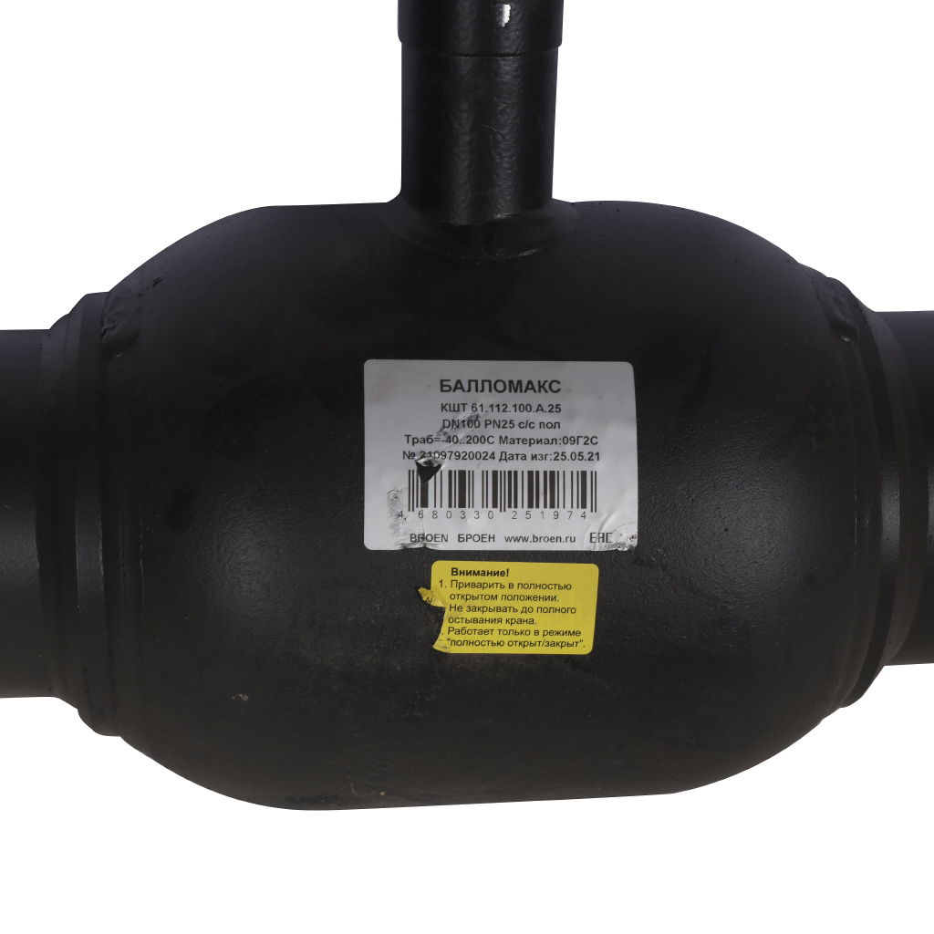 БРОЕН Балломакс КШТ 61.112.100 кран шаровой стальной для теплоснабжения полный проход с/с DN 100 PN 25 с рукояткой [КШТ 61.112.100.А] 585528 Сертификаты Эк