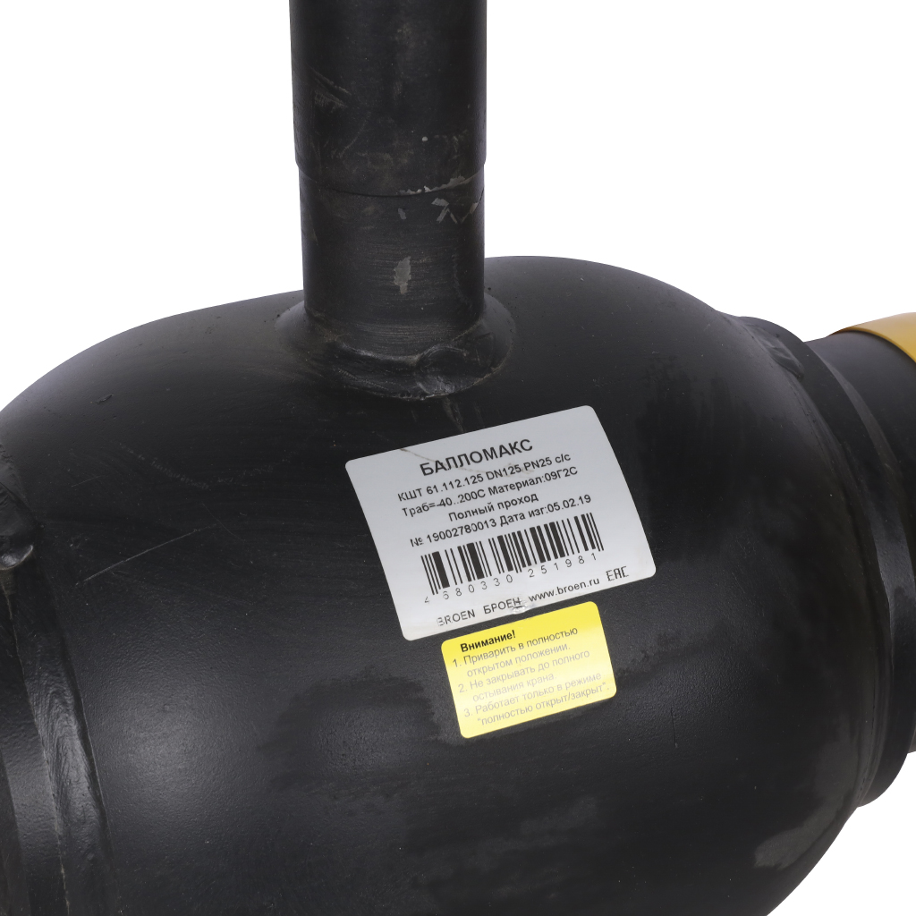 БРОЕН Балломакс КШТ 61.112.125 кран шаровой стальной для теплоснабжения полный проход с/с DN 125 PN 25 с рукояткой [КШТ 61.112.125.А] 585556 Сертификаты Эк