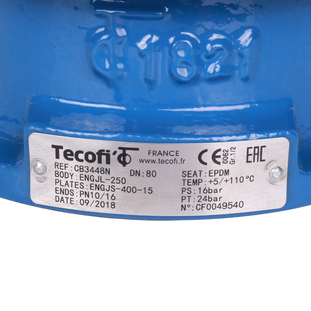 CB3448N-EP0080 Tecofi Клапан обр 2/ств чугун CB3448 Ду80 Ру16 межфл ст/чуг T=110