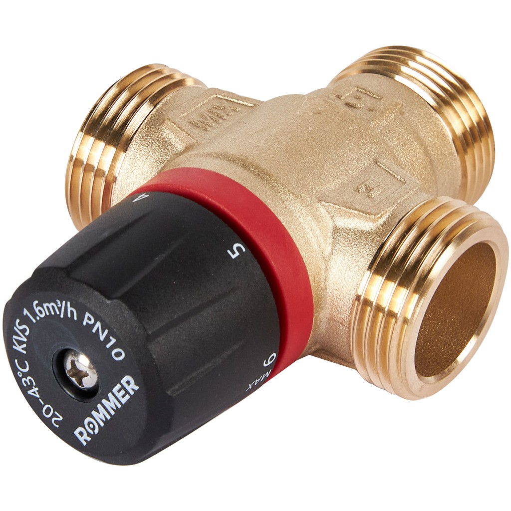 RVM-0131-164325 ROMMER Термостатический смесительный клапан для систем отопления и ГВС 1 НР 20-43°С KV 1,6 (боковое смешивание)