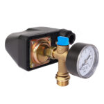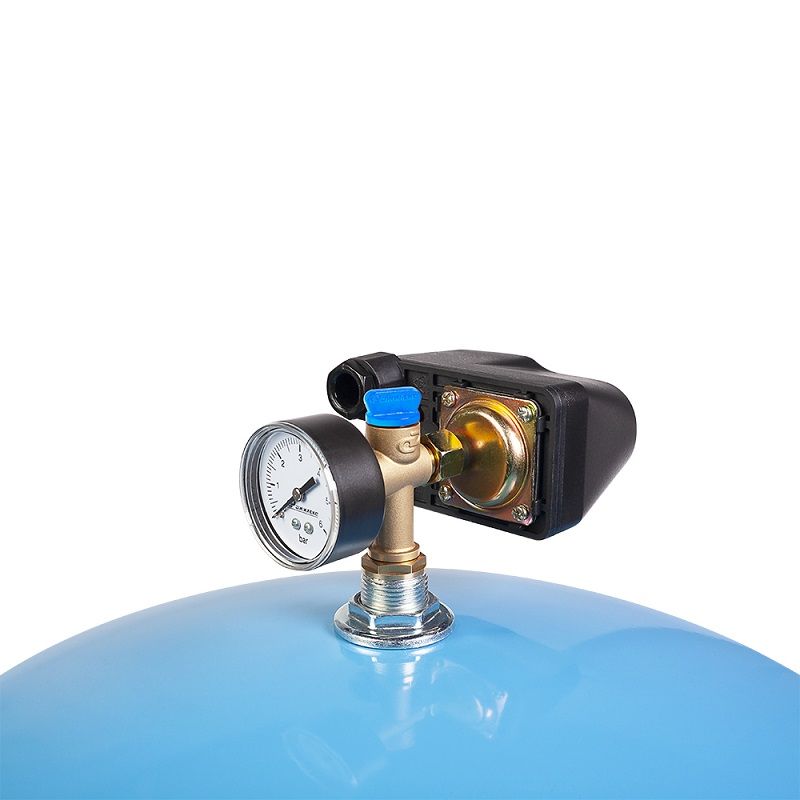 Визуальный контроль давления в системе водоснабжения позволяет осуществлять манометр с пределом измерения 6 бар.